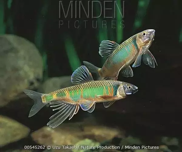 鳃孔大,鳃耙短,末端尖,排列稀疏。下咽齿较细弱,顶端尖,稍弯曲。背鳍无硬刺,外缘平截,其起点至吻端的距离较至尾鳍基为近。胸鳍小,末端尖,后伸达到腹鳍基部。腹鳍小,外缘平截,其起点位于背鳍起点下方。臀鳍基部较长,雌鱼第1—2根分枝鳍条稍长,外缘凹形;雄鱼第1—4根分枝鳍条甚长,其他鳍条亦较长。末端多分离。尾鳍分叉深,上下叶等长,末端尖。
