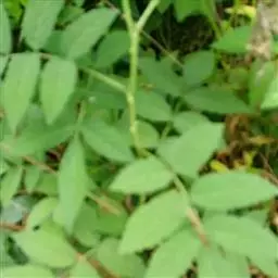 叶片卵形至长卵形,稀长椭卵形,长4~7厘米,宽2.5~4厘米,先端渐尖,稀急尖,基部圆形,边缘有钝锯齿,稀先端有少数细锐锯齿,上下两面均无毛或在萌蘖上叶片有柔毛,侧脉5-10对;叶柄长2.5~5厘米,无毛;托叶膜质,线状披针形,先端渐尖,边缘有腺齿,长6~10毫米,内面具白色绵毛,很早脱落。