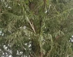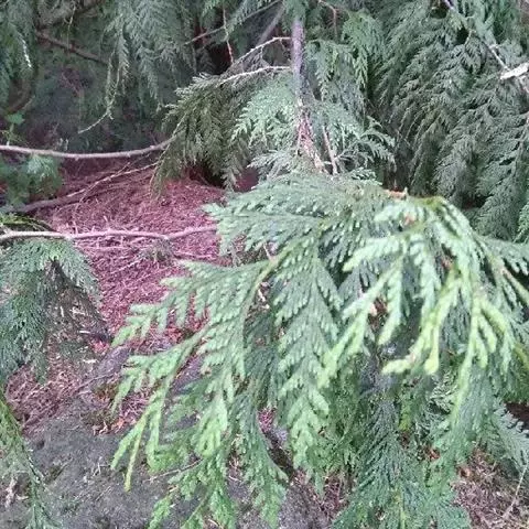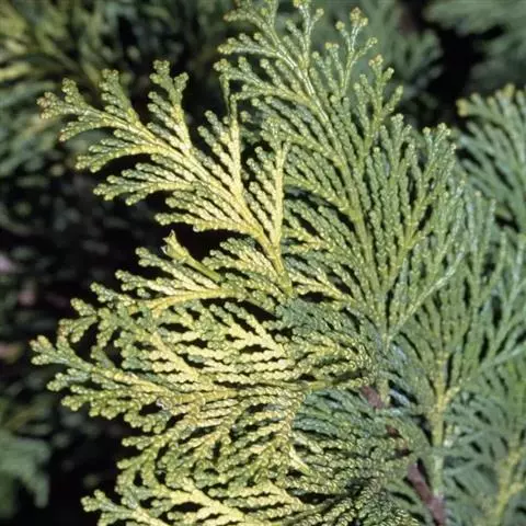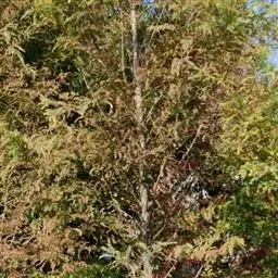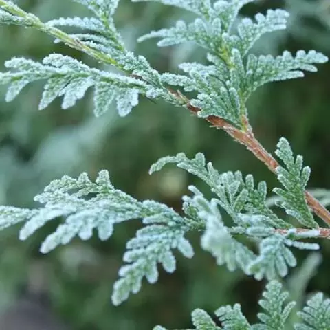乔木,在原产地高达50米;树皮红褐色,裂成薄皮脱落;树冠尖塔形;生鳞叶小枝条扁平,排成一平面。鳞叶先 端锐尖,侧面之叶较中间之叶稍长,小枝上面中央之叶深绿色,下面之叶有明显的白粉。球果圆球形,径约6毫米,熟时暗褐色;种鳞5—6对,顶部中央稍凹,有凸起的小尖头,发育的种鳞各有1—2粒种子;种子三角状卵圆形,有棱脊,两侧有宽翅,径约2—3毫米。