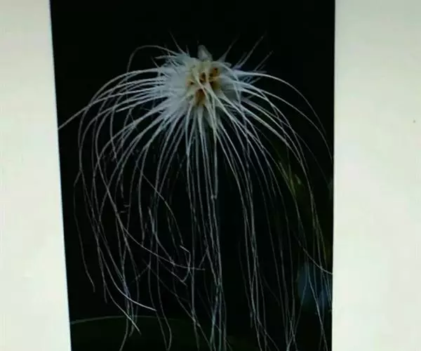 花雌雄同株。雄花组成总状花序,常有1单生雌花并生,花序梗长10-18厘米,疏被短柔毛及长硬毛,顶端具8-10花,花梗细,长5-12毫米,密被短柔毛;苞片钻状披针形,长3 (-5) 毫米;花萼筒近圆筒形,长2.5-3厘米,顶端略扩大,径4-5毫米,密被短柔毛及疏被长柔毛状硬毛,裂片狭三角形,长约2毫米,基部宽约1毫米,反折;花冠白色,裂片卵状长圆形,长7-8毫米,宽约3毫米,具3脉,流苏与花冠裂片近等长;花药柱卵球形,长约3毫米,花丝纤细,长约2毫米;退化雌蕊具3枚纤细分离的花柱。雌花单生,花梗长不及1厘米,密被长柔毛;花萼及花冠同雄花;子房棒状,长2.5-3厘米,径约3毫米,密被极短柔毛及长柔毛状硬毛。