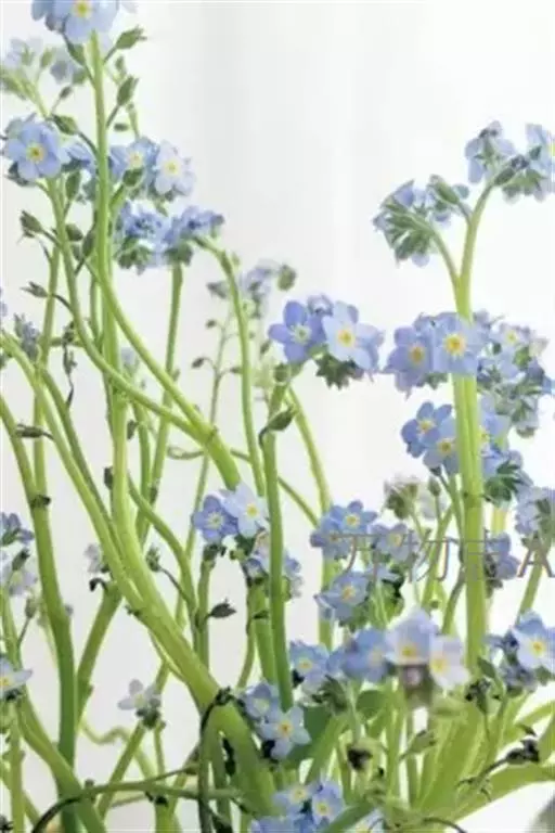 勿忘草 勿忘草花枝较长,易倒伏,要生产高质量的勿忘草切花,通常要拉网固定花枝或立支架防倒伏,具体做法是在植株抽薹前,用25cm×25cm或30cm×30cm的尼龙网,距地面20-30cm拉设一层网架。