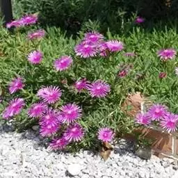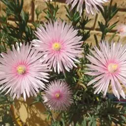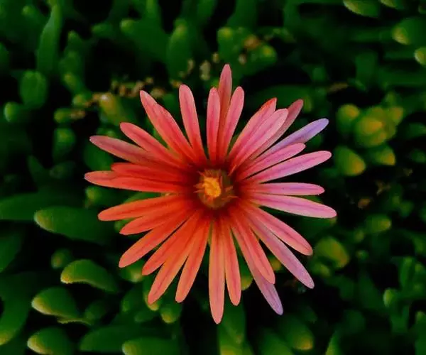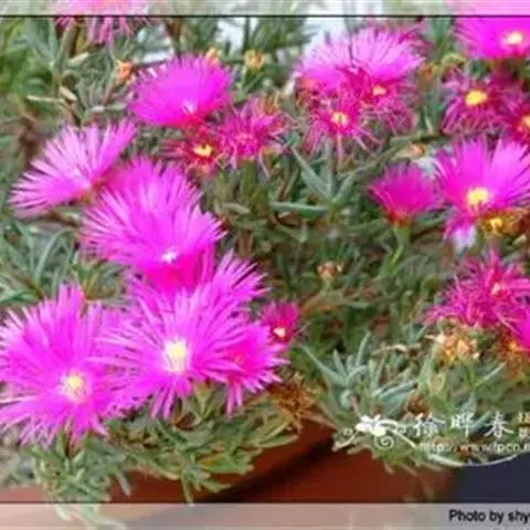 美丽日中花以观花为主。该种花大、色泽艳丽、繁茂,在匍匐平 伸的枝条衬托下,更显娇柔艳丽。常置放于室内,阳台,走廊盆栽或吊盆欣赏,为一种理想的盆栽多肉观花植物。