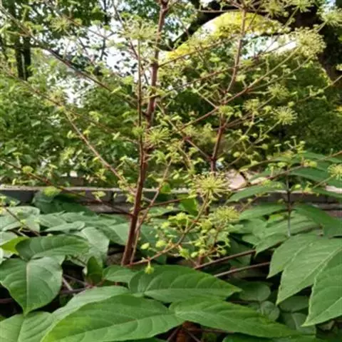 摘心矮化是木本经济作物的主要栽培技术之一,楤木树种本来就是灌木型和小乔木型,栽培主要采用灌木型的矮树密植方式种植,通过摘心矮化处理后一般成型的后楤木树高控制在50-100厘米,便于春季萌芽后的生产与采摘.到了秋天,9月要集中进行打顶摘心等技术操作成功使其矮化,不然错过季节,生长过快,到了冬季,枝条野长使管理和修剪成本增大,同时对来年发芽和产量提高产生影响。通过技术手段成功使其矮化后,按照前提科学的管理和计划,每一棵树都要成功培养出2-3个侧枝,以后加强继续管理和修剪,促使其粗壮,通过两年的管护,在每个侧枝上再培育出2-3个枝条,到第三年采摘生产时最后培育10个以上成型的侧枝,按照均匀分配的原则,让保留的侧枝向四面八方均匀分布,形成良好的采摘面,为第四年进入盛产期打好坚实的丰产基础。