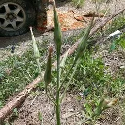 桃叶鸦葱(学名:Scorzonera sinensis Lipsch. et Krasch. ex Lipsch.),别名老虎嘴,为菊科多年生草本,高5-50厘米。根垂直直伸,粗壮。茎直立,簇生或单生,基部被稠密的纤维状撕裂的鞘状残遗物,和田地里小蒜头的外皮相似。基生叶披针形,大小不定,包括叶柄长可达33厘米,短可至4厘米,宽0.3~5厘米。桃叶鸦葱最醒目的形态特征之一就是其皱波状的叶缘。茎生叶较少,鳞片状,披针形,半抱茎或贴茎。