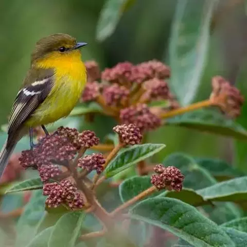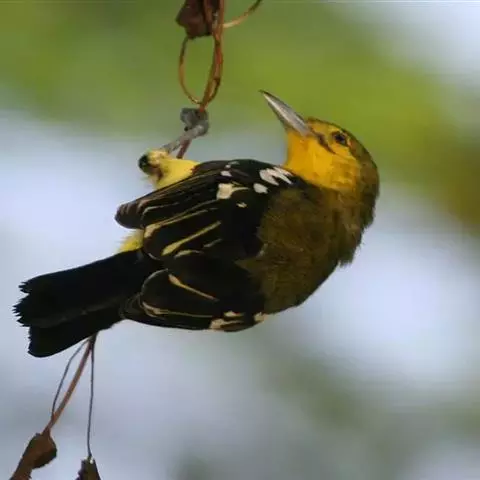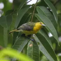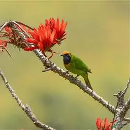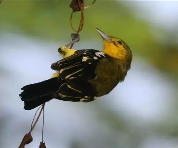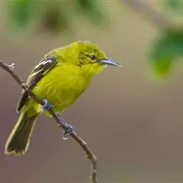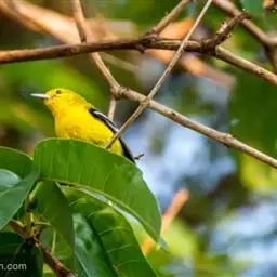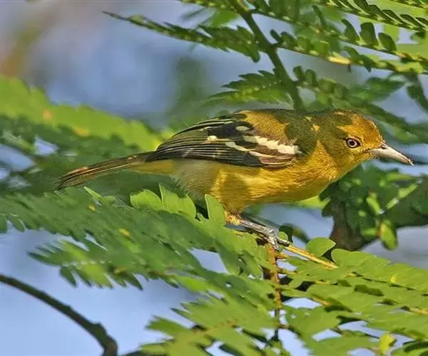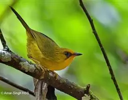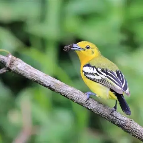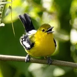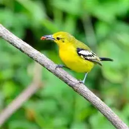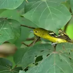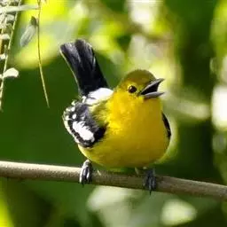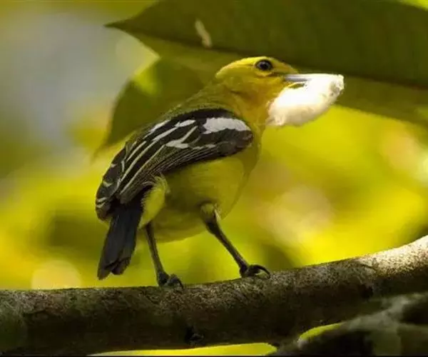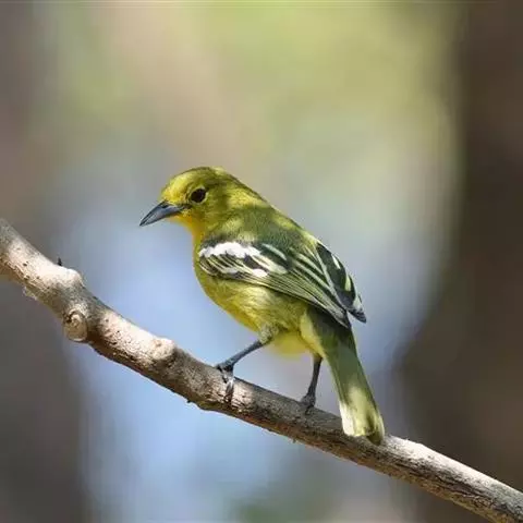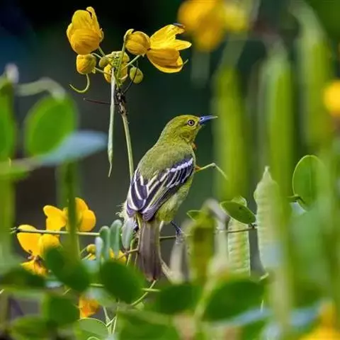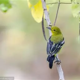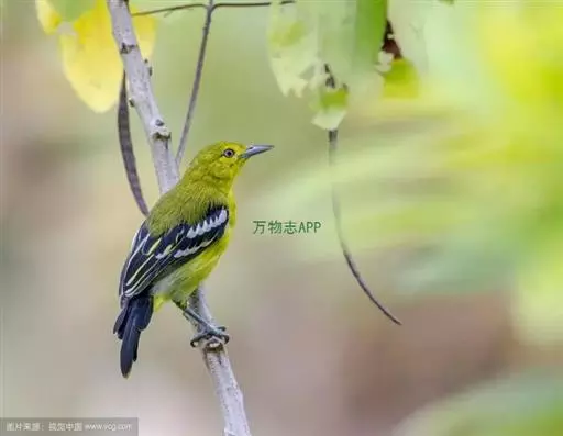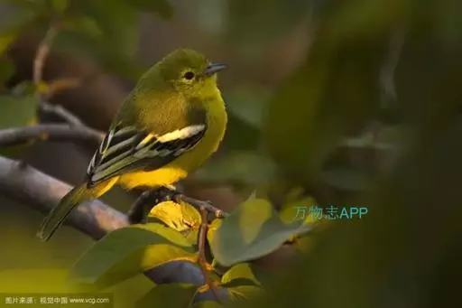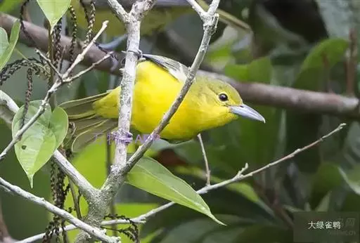 黑翅雀鹎(学名:Aegithina tiphia):体重14-19克,体长11.5-16厘米。是树栖性绿色小鸟,外形与叶鹎相似,下体黄色。鸟喙直,翼长而尖,总体羽毛是绿色和黄色相结合,翼上具两道明显近白色横纹,翼近黑而羽缘白。虹膜灰色、淡黄色或棕红色,嘴灰蓝色、银灰色或黑色,跗蹠灰色。