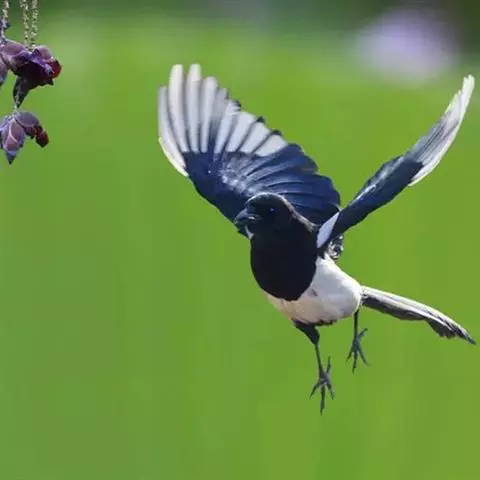 喜鹊:是鸦科、鹊属的一种鸟类。共有11个亚种。体长40-50厘米,雌雄羽色相似,…