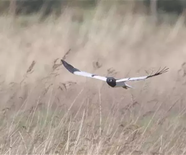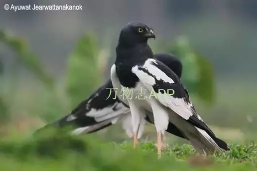 鹊鹞(学名:Circus melanoleucos):是一种中型猛禽。体重250-380克,体长42-48厘米。而两翼细长的鹞。体色比较独特,与其他鹞类不同,头部、颈部、背部和胸部均为黑色,尾上的覆羽为白色,尾羽为灰色,翅膀上有白斑,下胸部至尾下覆羽和腋羽为白色,站立时外形很像喜鹊,所以得名。虹膜黄色,嘴黑色或暗铅蓝灰色,下嘴基部黄绿色,蜡膜也为黄绿色,脚和趾黄色或橙黄色。