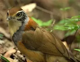 幼鸟上体棕褐色,具黑色纵纹和棕色羽缘,头顶和后头黑褐色,羽缘棕黄色,后颈棕白色,具黑褐色纵纹;背、肩、腰和两翅覆羽暗褐色,具棕褐色或棕黄色羽缘;初级飞羽和次级飞羽黑褐色,具灰白色或淡棕色先端,尾上覆羽淡棕色或白色,具黑色横斑,中央尾羽灰褐色,外侧尾羽棕黄色,具4-5条黑褐色横斑,喉棕白色,具纤细的羽干纹;上喉具棕色皱颈领翎,胸棕褐色,羽缘棕黄色,腹、两胁和尾下覆羽及覆腿羽棕栗色,羽干纹栗色。