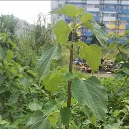 叶长圆形,倒卵状椭圆形至倒披针形,长19-21厘米,宽3-9厘米,先端渐尖至钝,基部楔形或钝,边缘具粗齿或不明显的细齿,草质,上而干时暗褐色,粗糙,被短硬毛或短硬毛及混生的星状短硬毛,老叶的网脉下陷,下面密被污黄色星状绒毛;叶柄长1-3厘米,腹平背凸,毛被同于叶背。