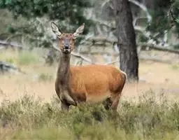 马鹿(学名:Cervus elaphus)是仅次于驼鹿的大型鹿类,共有10个亚种,因为体形似骏马而得名,身体呈深褐色,背部及两侧有一些白色斑点。雄性有角,一般分为6叉,最多8个叉,茸角的第二叉紧靠于眉叉。夏毛较短,没有绒毛,一般为赤褐色,背面较深,腹面较浅,故有“赤鹿”之称。