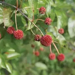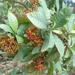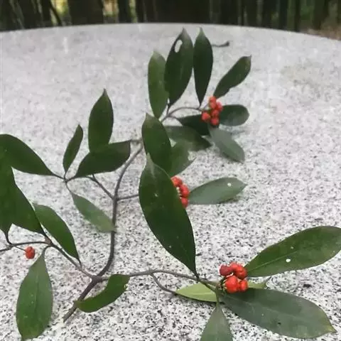 果近球形,直径约3.5毫米,成熟时由黄绿色变白色,无毛,宿存萼片5(偶有4?),狭披针形,长达10毫米。花期夏季。