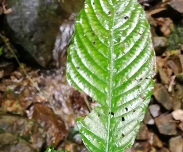 高大草本或灌木状,高20-100厘米;老茎粗壮,有松软、灰白色的树皮,嫩部干时黑色,被柔毛。叶常聚于小枝上部,纸质,倒卵形或长圆状倒卵形,长通常10-15厘米,很少达20厘米,宽5-7厘米,有时达8.5厘米,顶端骤尖或短尖,基部楔形或钝,边全缘或微波状,干时灰绿色,下面较苍白,上面无毛,下面脉上被极短的柔毛;中脉下面凸起,侧脉每边9-13条,侧脉间常有1或2条较短的次要侧脉,均纤细,下面凸起;叶柄长通常1厘米左右,很少达2厘米,被柔毛;托叶披针状长圆形,很少近卵形,长8-12毫米,有时达15毫米,无毛或被柔毛,有很密的直出脉状条纹。