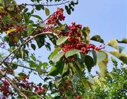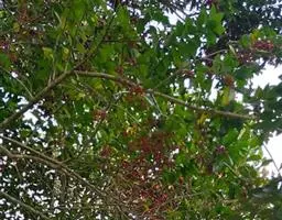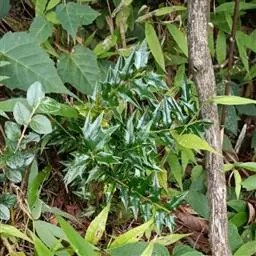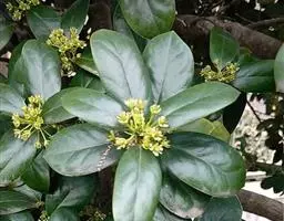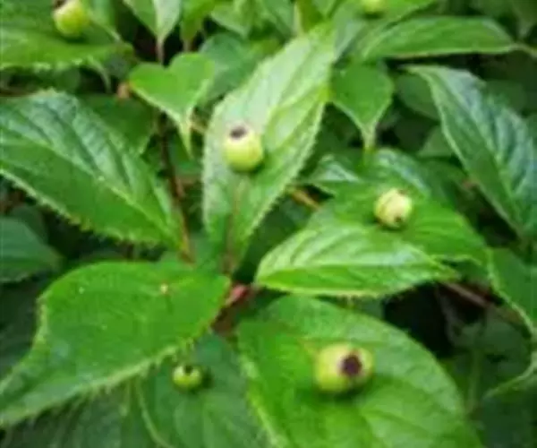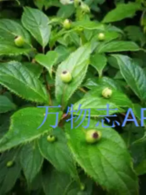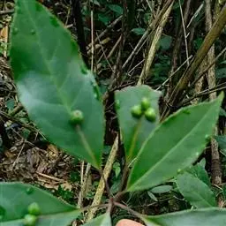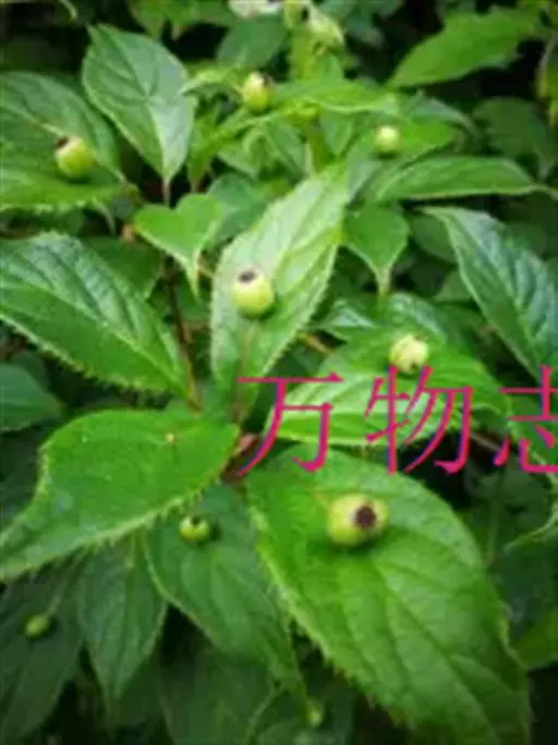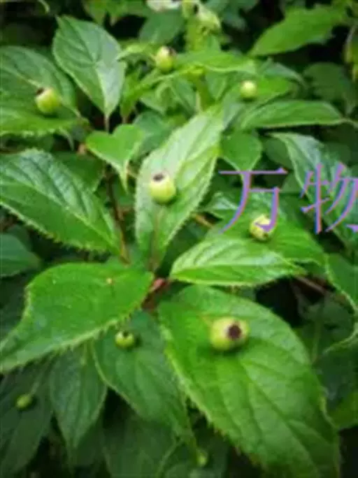 常绿小乔木或灌木,高3一4(一8)米。幼枝绿色,粗壮。叶革质,倒卵状长圆形、长圆形,稀倒披针形,长915厘米,宽3一5厘米,先端急尖或渐尖,具1 -1,5厘米尖尾,基部楔形,边缘除近基部1/3处全缘外,其余均具腺状锯齿,叶上面深绿色,干后呈橄榄色,背面淡绿色,干后有淡黄褐色斑纹,侧脉在幼叶上微显著,在老叶上面不显著,老叶背面微显著;叶柄长1一5厘米;托叶2片,线状披针形或钻形。雄花多数簇生,常5 -20(一30)枚,呈密伞花序,生于叶上面主脉的1/4-1/3处(稀生于近叶柄处),或生于幼枝上,雄花紫绿色,小花梗长3一7毫米,雌花1一4(一6)枚,呈伞形花序,小花梗长2一4毫米,花绿色,柱头3一4(一5)裂,子房3一4(一5)室。浆果状核果,成熟后黑色。种子3一4(一5)粒,椭圆形,长约9毫米。花期3一4月,果期7一8月。