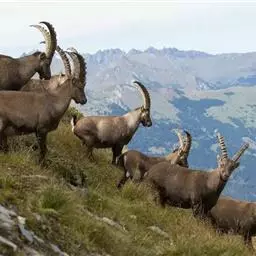 罕见北山羊现身甘肃山间嬉戏觅食。2014年5月,气温回升,甘肃马鬃山一带出现了成群的罕见国家一级保护动物北山羊嬉戏觅食。在方圆5平方公里的这一带山坡上就出现了三群,数量有近百只之多,实属罕见。