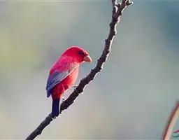 藏朱雀:全长约17-18厘米。雄鸟头部深红色具光辉,喉部暗红色具白色点斑;背部灰白色,各羽具玫瑰红…