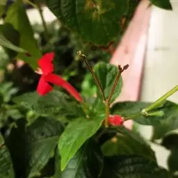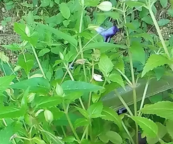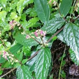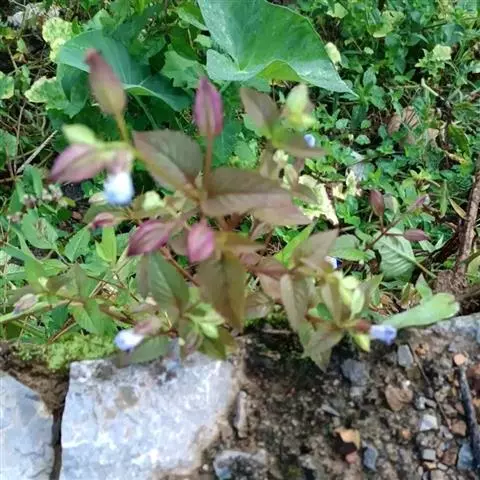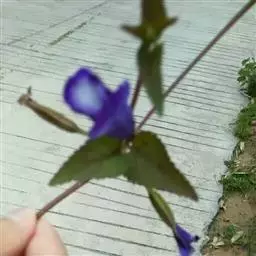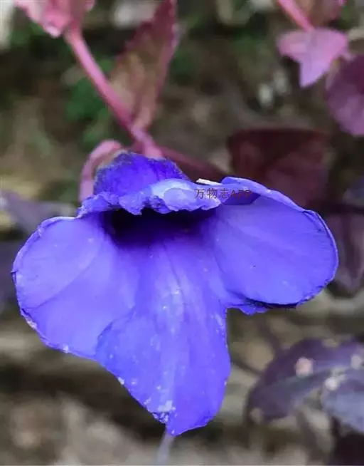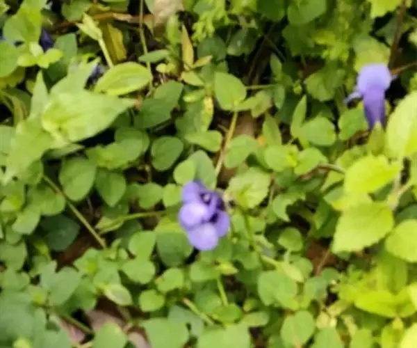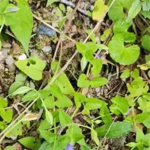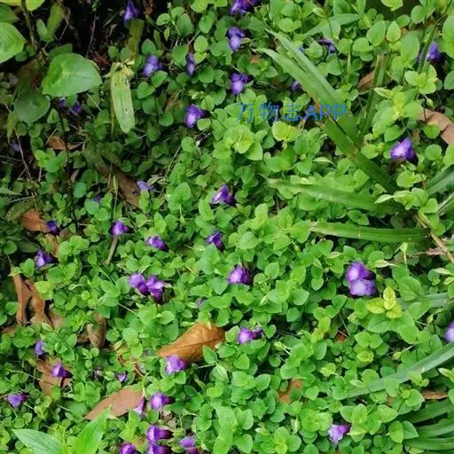 匍匐草本;茎具4棱,节上生根;分枝上升或直立。叶具长2-10毫米之柄;叶片三角状卵形或长卵形,稀卵圆形,长1-4厘米,宽0.8-2.5厘米,先端钝或急尖,基部宽楔形或近于截形,边缘具锯齿或具带短尖的圆锯齿,无毛或疏被柔毛。花具长2-3.5厘米之梗,果期梗长可达5厘米,单朵腋生或顶生,稀排成伞形花序;萼长1.2-1.5(1-7)厘米,果期长达2.3厘米,具5枚宽略超过1毫米之翅,基部下延;萼齿2枚,长三角形,果实成熟时裂成5枚小齿;花冠长2.5-3.9厘米,其超出萼齿部分长11-21毫米,蓝色或蓝紫色;前方一对花丝各具1枚长2-4毫米的线状附属物。花果期5-11月。 [1-2]
