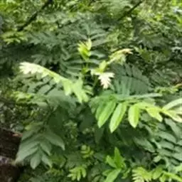 枫杨 枫杨丛枝病在长江以南发病普遍,整个枝丛颜色呈黄绿色,基部显著肿大,叶片黄绿色,明显小,并略有皱曲,多着生于粗侧枝或主干上,这是枫杨病枝明显特征,并且主要表现在多年的大树上。发生严重时,病枝根本不开花。