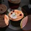 2.取30个蛋糕模(铁皮圆模或花模均可),抹油或垫油纸,然后将蛋糕糊分别倒在模子内上笼蒸约5分钟左右即熟,下笼磕出,中心点一红点即成。