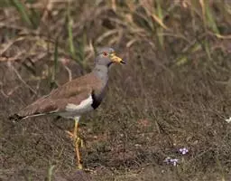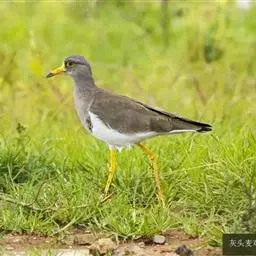 灰头麦鸡是鸻形目鸻科麦鸡属鸟类,繁殖期头、颈及胸灰色;胸部和腹部之间有黑色胸带分隔;背部及两翼大部分覆羽褐色;腹部和腰部白色;尾羽基部及边缘白色,近末端有黑色斑块。非繁殖期头颈部染褐色,颏及喉部白色,胸带不明显。初级飞羽黑色,其余飞羽及与之相邻的部分覆羽白色;虹膜红褐色,眼圈黄色;嘴尖段黑色,后段黄色;腿和脚黄色。灰头麦鸡分布于欧亚大陆及非洲北部、中南半岛以及太平洋诸岛屿,在中国分布于东南沿海地区。栖息于丘陵、平原地区河流、湖泊和沼泽等水体附近。繁殖期成对活动,其余时间集群活动。主要啄食甲虫、蝗虫、蚱蜢等昆虫,也吃水蛭、螺、蚯蚓、软体动物和植物叶片及种子。繁殖期为5—7月,1年繁殖1窝,每窝产卵4枚。灰头麦鸡被列入中国国家林业局发布的《国家保护的有益的或者有重要经济、科学研究价值的陆生野生动物名录》。