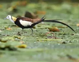凤头麦鸡:中型涉禽,体长29-34厘米。头顶具细长而稍向前弯的黑色冠羽,像突出于头顶的角,甚为醒目。…