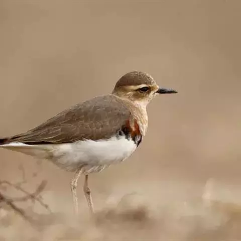 东方鸻:属小型涉禽。体重80-95克,体长220-255毫米。在夏季,前额、眉纹和头的两侧白色,头…