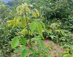 育苗可采用播种和扦插育苗。圃地宜选择在土壤肥沃、排水良好砂壤地。秋播优于春播,秋播宜于11月中旬进行,春播在4月初进行。秋播可直播。春播种子应于播前用60℃温水浸种1天,每天用清水冲洗1次,3天~4天后播种。采用条播,播种量为每10平方米250克。覆土1厘米,15天左右出苗。当幼苗长至15厘米高时,拔草同时进行间苗,留大留稀;当苗高达30厘米时,进行定苗,苗间距12厘米。当年苗高80厘米~100厘米。在苗木生长初期和中期要追施氮肥。次年造林,也可留床1年,到翌年11月末平茬割条,枝条即可用于编织或作扦插材料;根于次年春季用于造林。可扦插育苗,每穴植1~2株。也可截干造林,株行距1米,栽后覆土踏实。土壤干燥地段栽后要及时浇水。当年枝高可达2米。对造林条件好的地段也可采用直播造林,每穴10粒~15粒种子,种子散开,穴径30厘米,穴距1米,最后每穴留3株~5株茁木。