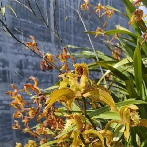 莎草兰(Cymbidium elegans Lindl.)兰科附生草本植物,假鳞茎近卵形,叶6-13枚,二列,带形,花葶从假鳞茎下部叶腋内长出,总状花序下垂,具20余朵花,花苞片小,花下垂,狭钟形,几不开放,稍有香气,奶油黄色至淡黄绿色,有时略有淡粉红色晕或唇瓣上偶见少数红斑点,褶片亮橙黄色,萼片狭倒卵状披针形,蒴果椭圆形,花期10-12月。莎草兰性喜阴,忌阳光直射,喜湿润,忌干燥,适合种植于富含腐殖质的砂质壤土,排水性能必须良好,pH值以5.5-6.5为宜。莎草兰产于我国四川西南部、云南西北部至东南部和西藏东南部,尼泊尔、不丹、锡金、印度、缅甸也有分布。莎草兰花期长,且有香气,可种植于花坛边缘与花境及疏林地被供观赏。
