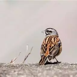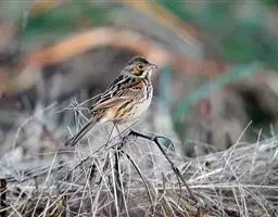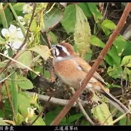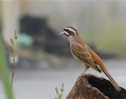 栗斑腹鹀:属小型鸣禽。体重19-25克,体长145-167毫米。头顶至背栗红色,眼先和颧纹黑褐色,…