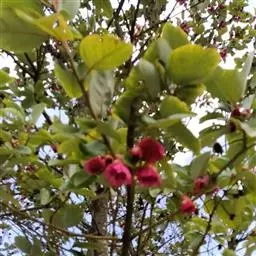 红花荷:金缕梅科红花荷属常绿乔木,高可达12米,嫩枝颇粗壮,叶厚革质,卵形,光滑无毛,有三出脉,叶…