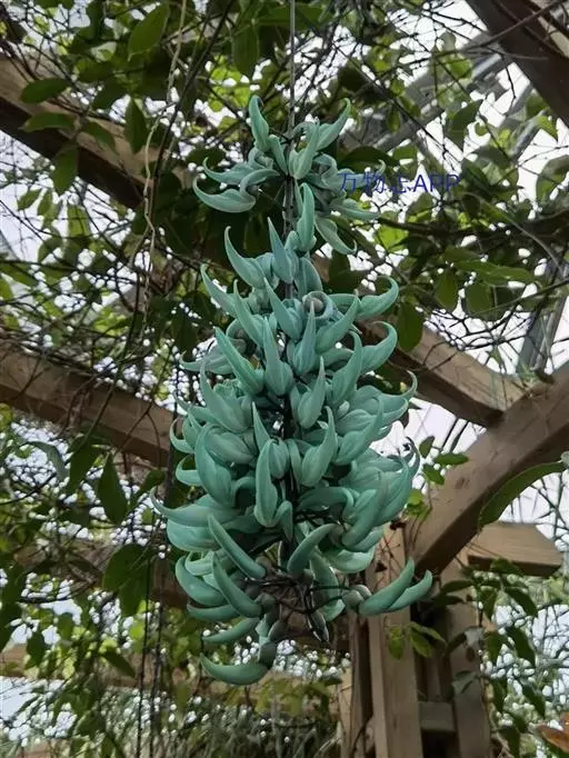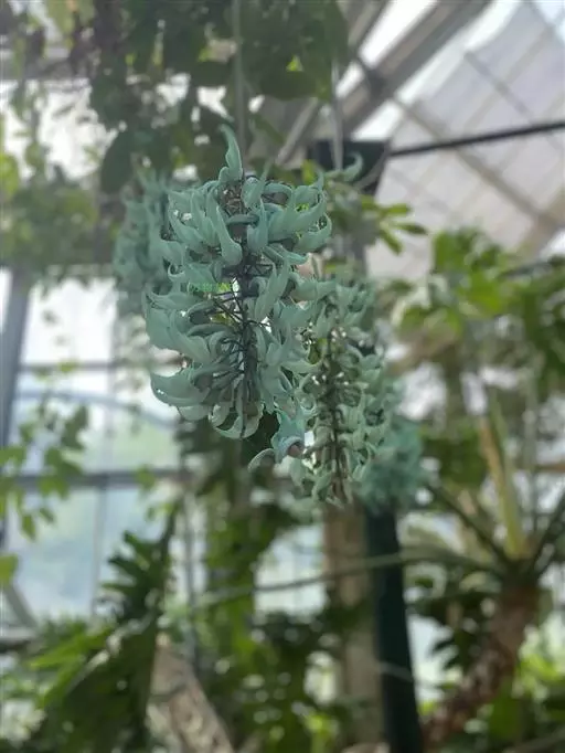绿玉藤(学名:Strongylodon macrobotrys A. Gray) 是豆科(蝶形花科)绿玉藤属的多年生常绿藤本植物。茎木质,长可达20余米。掌状复叶,常3小叶,小叶长椭圆形,先端渐尖,基部楔形,叶脉明显,叶全缘,下部小叶不对称。由多朵小花组成总状花序,爪形花朵颜色从蓝绿色到薄荷绿各不相同,花序可达1.5米。荚果。花果期:花期12-4月。