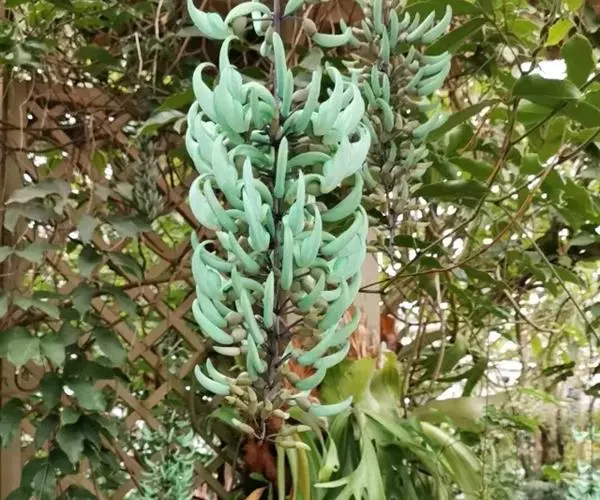 绿玉藤是一种多年生常绿大型藤本植物,茎木质,直径可达30厘米,长可达21.3米。三出复叶,革质光亮,小叶长椭圆形,长7.6-12.7厘米,中间小叶最长。无法忍受霜冻或干旱。幼叶有时暗,几乎是黑色,随着生长会变成浅绿色,暗脉看起来像萎黄,随着叶子的成熟,它会变成深绿色。