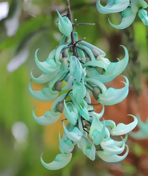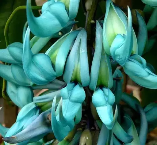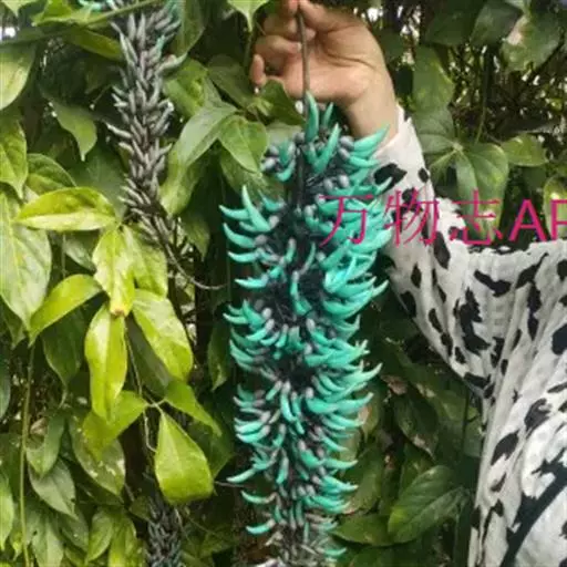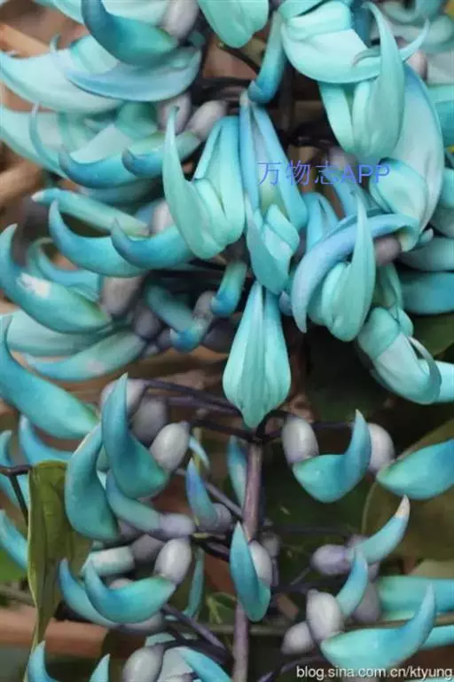 花两性,春季至初夏开花,蓝绿色,形似鸟爪,多朵小花成簇聚集在一起,组成长达90-150厘米或更长的下垂的总状花序,极为壮观。它的花是很独特的蓝绿色,这在植物界几乎是独一无二的,花悬挂于茂密的叶丛中,看上去就像发出冷光一样,极其迷人。非常漂亮。