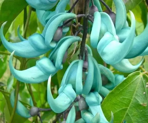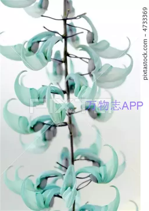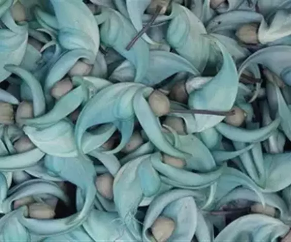 翡翠葛花形奇特,花色稀有,盛花时节犹如百鸟归巢,蔚为壮观。暮春至初夏,花朵沿着花梗呈平展状生长,每一串花有数十朵,花碧玉色透蓝色光泽,龙骨瓣向上翘起,呈鹦鹉喙状,每一朵盛开的花像是一只翡翠雕琢而成的小鸟。花儿一串挨着一串,一朵接着一朵,犹如一群鸟儿振翅起飞。