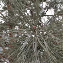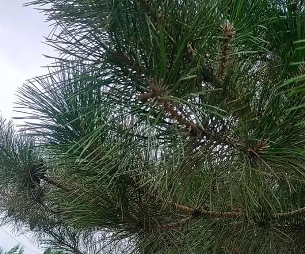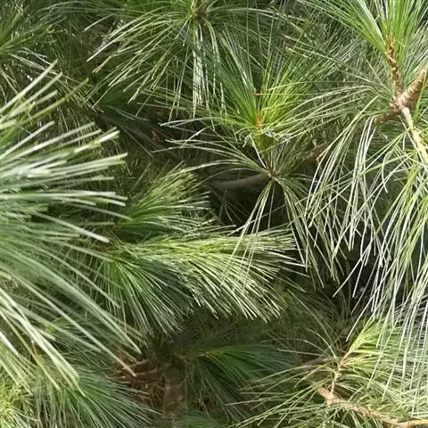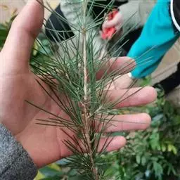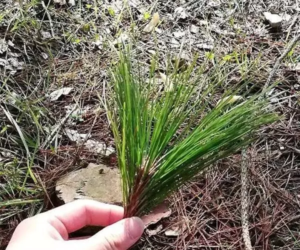 针叶2针一束,稀3针一束,长12-20厘米,细柔,微扭曲,两面有气孔线,边缘有细锯齿;横切面皮下层细胞单型,第一层连续排列,第二层由个别细胞断续排列而成,树脂道约4-8个,在背面边生,或腹面也有2个边生;叶鞘初呈褐色,后渐变成灰黑色,宿存。