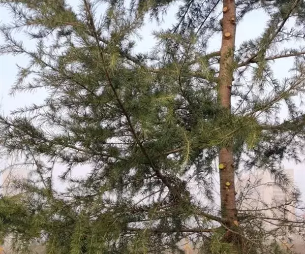 乔木,高达45米,胸径1.5米;树皮红褐色,下部灰褐色,裂成不规则的鳞状块片;枝平展或斜展,树冠宽塔形或伞形,枝条每年生长一轮,但在广东南部则通常生长两轮,淡黄褐色,无白粉,稀有白粉,无毛;冬芽卵状圆柱形或圆柱形,褐色,顶端尖,芽鳞边缘丝状,先端尖或成渐尖的长尖头,微反曲。