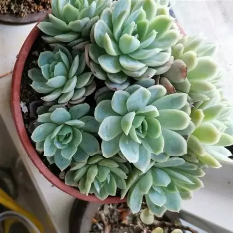 冰莓是景天科拟石莲属多肉植物。非常美的一种多肉植物,秋天的时候会变成桃红色,叶边有透明感,…
