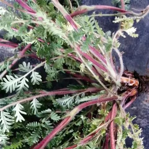 委陵菜食用器官为肉质根,应选土质疏松、土壤肥沃、灌溉便利的地块。选地后先深翻土地,结合翻地每亩施入腐熟有机肥3000 ~4000 公斤,与土壤混匀翻入土中,将土块打碎整细。做成宽30 厘米、高20厘米的高垄,垄距20 厘米。