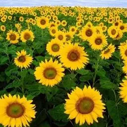 泰国中部华富里府的大片向日葵花在阳光下怒放。当地是泰国最大的向日葵种植地,每年11月1日到12月31日向日葵花盛开时都举行“葵花节”,是泰国著名的景点之一。在花语中,向日葵代表“崇拜”和“敬慕”。其中,向日葵的黄色代表着怀念、怜爱等意,橙色则代表着喜悦、友谊与和睦,通常在花束中作为主花而倍受瞩目,从不会作为配花出现。由于12月5日是泰国的父亲节,而向日葵的花语含义通常带有“父爱”、“尊崇”之意,因此向日葵作为父亲节主要的观赏花和礼品花。 在泰国中部各府,金黄色的向日葵田一望无际,人们无需任何门票或其它费用,可以随意地走进任何一片田内拍照留念。一到每年这个时候,向日葵田里游人如织,大家纷纷利用空闲时间来到郊外赏花。金黄色的花盘与翠绿色的花茎相衬,再配上泰国蓝如绸缎的天空,的确给人以一种美的享受。田里是随处可见的游人,田外则是村民在售卖与向日葵有关的商品:盆栽、别针、头饰、风铃、插花……作工别致,吸引了不少游人购买。