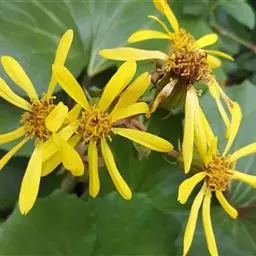 头状花序,极大,直径10~30厘米,单生于茎顶或枝端,常下倾。总苞片多层,叶质,覆瓦状排列,被长硬毛,夏季开花,花序边缘生黄色的舌状花,不结实。花序中部为两性的管状花,棕色或紫色,结实。