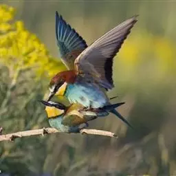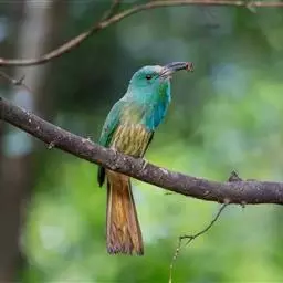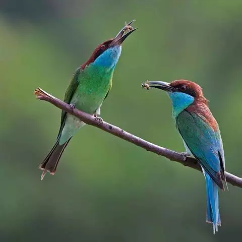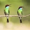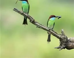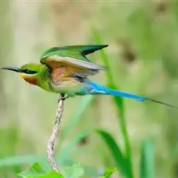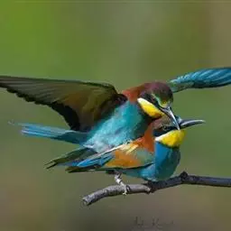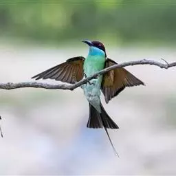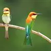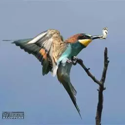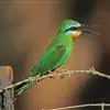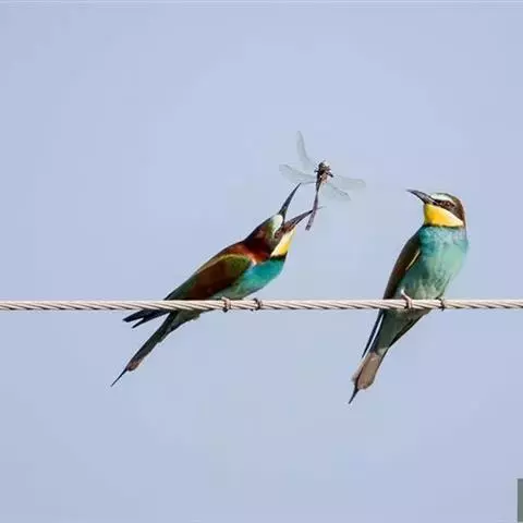 蓝颊蜂虎:是蜂虎科、蜂虎属的鸟类,共有2个亚种。体长27-33厘米,翼展46-49厘米,…