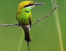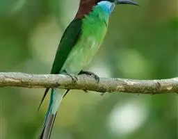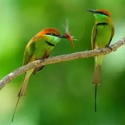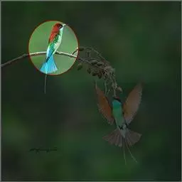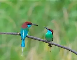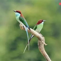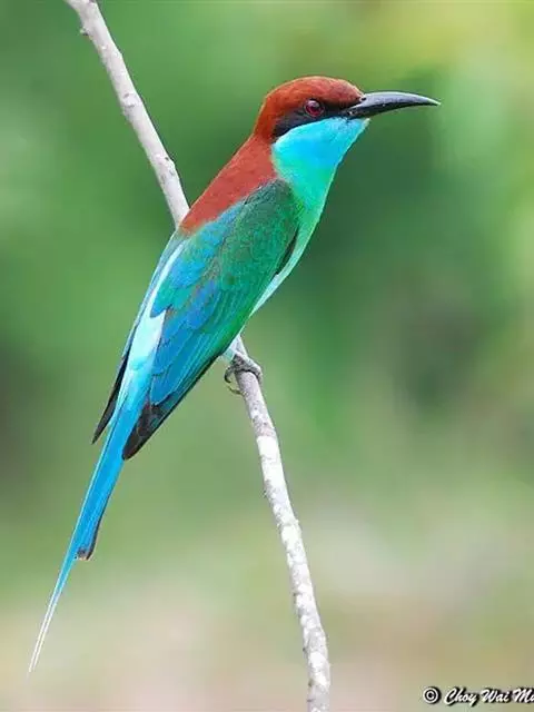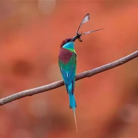 栗喉蜂虎是蜂虎科蜂虎属的鸟类。有热带鸟类羽毛艳丽的特征:喉部是栗红色的,黑色的过眼纹,…