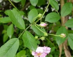 峨眉蔷薇,是蔷薇科蔷薇属直立灌木植物。峨眉蔷薇的小枝无刺或有扁而基部膨大皮刺;小叶长圆形或椭圆状长圆形,无毛;叶轴和叶柄有散生小皮刺,离生部分三角状卵形,边缘有齿或全缘;花单生叶腋,萼片披针形,全缘;花瓣白色,倒三角状卵形;蔷薇果倒卵圆形或梨形,熟时亮红色,果柄肥大,宿萼直立;花期为5-6月,果期为7-9月。峨眉蔷薇以产地命名。峨眉蔷薇产于中国多地,生于山坡、山脚下或灌丛中。峨眉蔷薇耐干旱,耐瘠薄,对土壤要求不严,在土层深厚、疏松、肥沃湿润且排水通畅的土壤中生长更好。峨眉蔷薇的繁殖方式为播种、扦插、压条。峨眉蔷薇的果实成熟时味甜,可鲜食,也可酿酒,晒干磨粉掺入面粉可作食品,其果实中含有糖及维生素等。峨眉蔷薇的果实不仅可以食用,还可入药,有止血、止痢、涩精之效。除此之外,峨眉蓄薇根皮含鞣质,可提制烤胶。