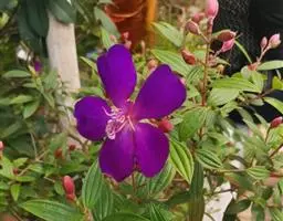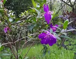 伞形花序或聚伞花序,或由聚伞花序组成的圆锥花序,顶生,总梗长1-5.5厘米,花梗长0.8-2厘米;花萼钟状漏斗形,管长5-7毫米,裂片线状披针形至狭三角形,长4-5毫米,两面均被毛;花瓣紫色或紫红色,卵形至广卵形,顶端渐尖,有时顶尖具1腺毛,微偏斜,仅外面上部及边缘被微柔毛,长10-14毫米,宽6-8毫米,雄蕊等长,长1.6-1.8厘米,花药披针形,通常作近90度的膝曲,长9-11毫米,药隔膨大,下延,前后连成盘状;子房卵形,顶端具膜质冠,冠缘具啮蚀状细齿。