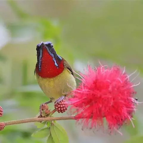 火尾太阳鸟小巧玲珑,羽毛鲜艳美丽,活鸟可供观赏,羽毛供装饰,也可作羽毛画。