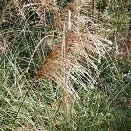 荻(学名:Triarrhena sacchariflora (Maxim. ) Nakai )为禾本科,荻属多年生草本植物。匍匐根状茎,秆直立,高可达1.5米,直径约5毫米,节生柔毛。叶鞘无毛,叶舌短,具纤毛;叶片扁平,宽线形,边缘锯齿状粗糙,基部常收缩成柄,粗壮。圆锥花序疏展成伞房状,主轴无毛,腋间生柔毛,小穗柄顶端稍膨大,小穗线状披针形,成熟后带褐色,基盘具长为小穗2倍的丝状柔毛;顶端膜质长渐尖,边缘和背部具长柔毛;颖果长圆形,8-10月开花结果。