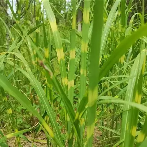 叶鞘无毛,长于或上部者稍短于其节间;叶舌短,长0.5-1毫米,具纤毛;叶片扁平,宽线形,长20-50厘米,宽5-18毫米,除上面基部密生柔毛外两面无毛,边缘锯齿状粗糙,基部常收缩成柄,顶端长渐尖,中脉白色,粗壮。