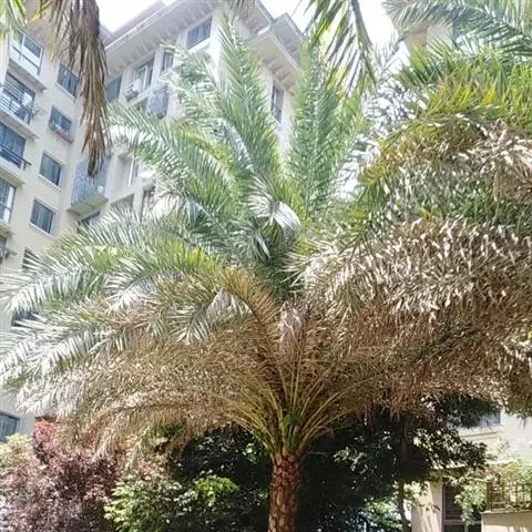 加那利海枣是棕榈科刺葵属植物,单干直立,自然高度可达18米,干径50-90厘米,幼时被以枯叶,…