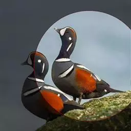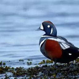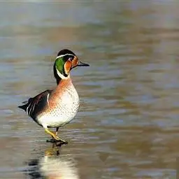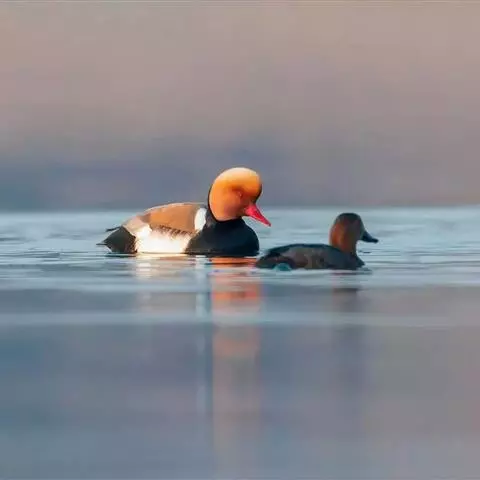 花脸鸭 花脸鸭是一种喜欢集群的鸭类,特别是冬季常集成大群,也常和别的鸭混群。繁殖期主要栖息在泰加林或苔原带的沼泽、河口三角洲、湖泊和水塘中,非繁殖期主要栖息于各种淡水或咸水水域,包括湖泊、江河、水库、水塘、沼泽、河湾以及农田原野等各类生境。