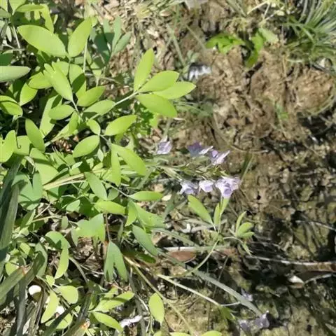 叶(1-)-2(-3)回三出,具细长的叶柄和小叶柄;叶柄基部常具叶鞘;小叶圆形至椭圆形,有时浅裂,下部苍白色,长9-25毫米,宽7-15毫米。总状花序具3-8花,疏离。苞片卵圆形或倒卵形,下部的较大,约长6毫米,宽3毫米。花梗明显长于苞片,下部的长15-25(-40)毫米。萼片小,早落。
