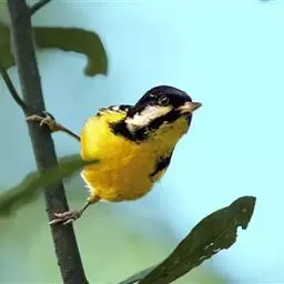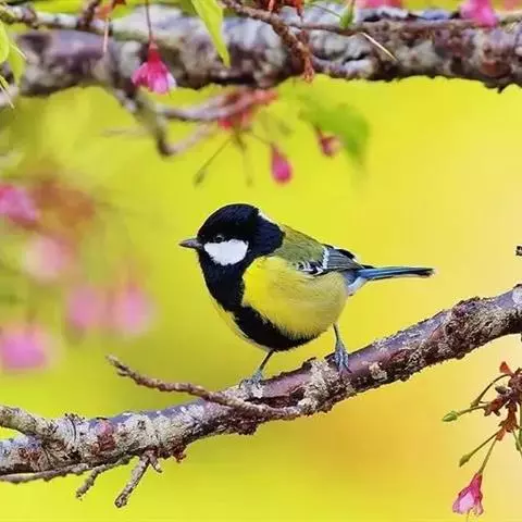 黄腹山雀是雀形目山雀科山雀属鸟类。虹膜褐色或暗褐色;嘴蓝黑色或灰蓝黑色;头、喉胸斑黑色,…